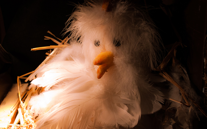 Le décor est planté, entre plumes et osier. Nous voici à la ferme, ou plutôt dans une de ces dépendances…le poulailler. C’est en ce lieu que mr et mme …. attendent un heureux événement. Ce sont en quelques sortes les propriétaires volatiles de cet endroit…